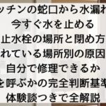 【キッチンの蛇口から水漏れ!】今すぐ水を止める「止水栓の場所と閉め方」!漏れている場所別の原因と自分で修理できるか・業者を呼ぶかの完全判断基準まで体験談つきで全解説【2026年版】