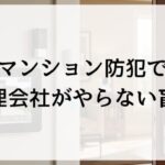 マンション防犯で管理会社がやらない盲点