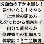 【洗面台の下が水浸し!】気づいたらすぐやる「止水栓の閉め方」!原因が5分でわかる場所別チェック・自分で直せるか・修理費用の相場まで体験談つきで全解説【2026年版】