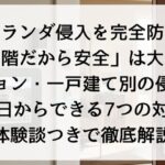 【ベランダ侵入を完全防止】「高層階だから安全」は大間違い?マンション・一戸建て別の侵入手口と今日からできる7つの対策を体験談つきで徹底解説【2026年版】